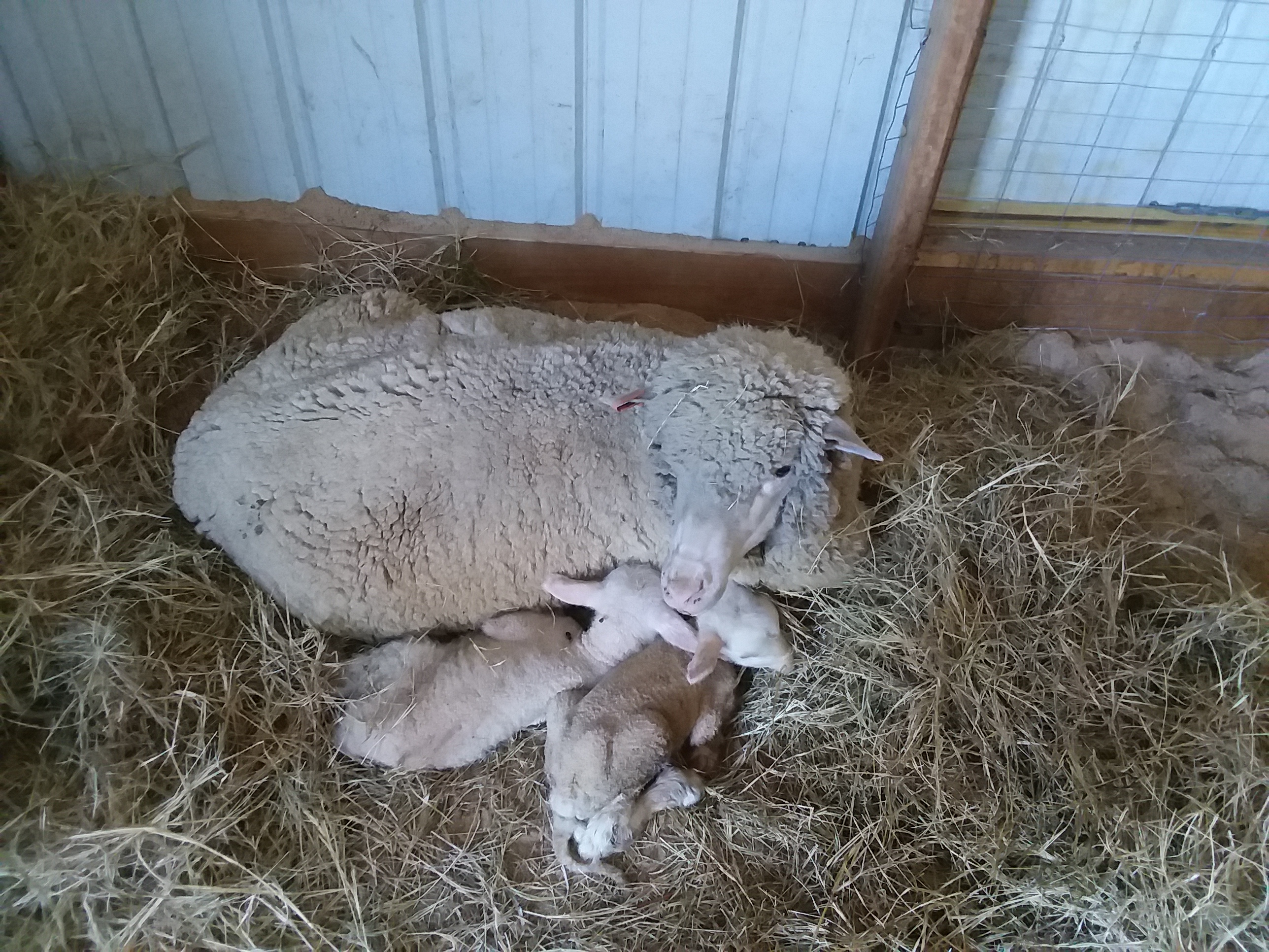 When it comes to our momma sheep and their babies, there appears to be a trend developing at Whirldworks Farm. It would appear that cold fronts that blow in on Sundays bring out the lambs! Last year pretty much all the babies came to us under these conditions.