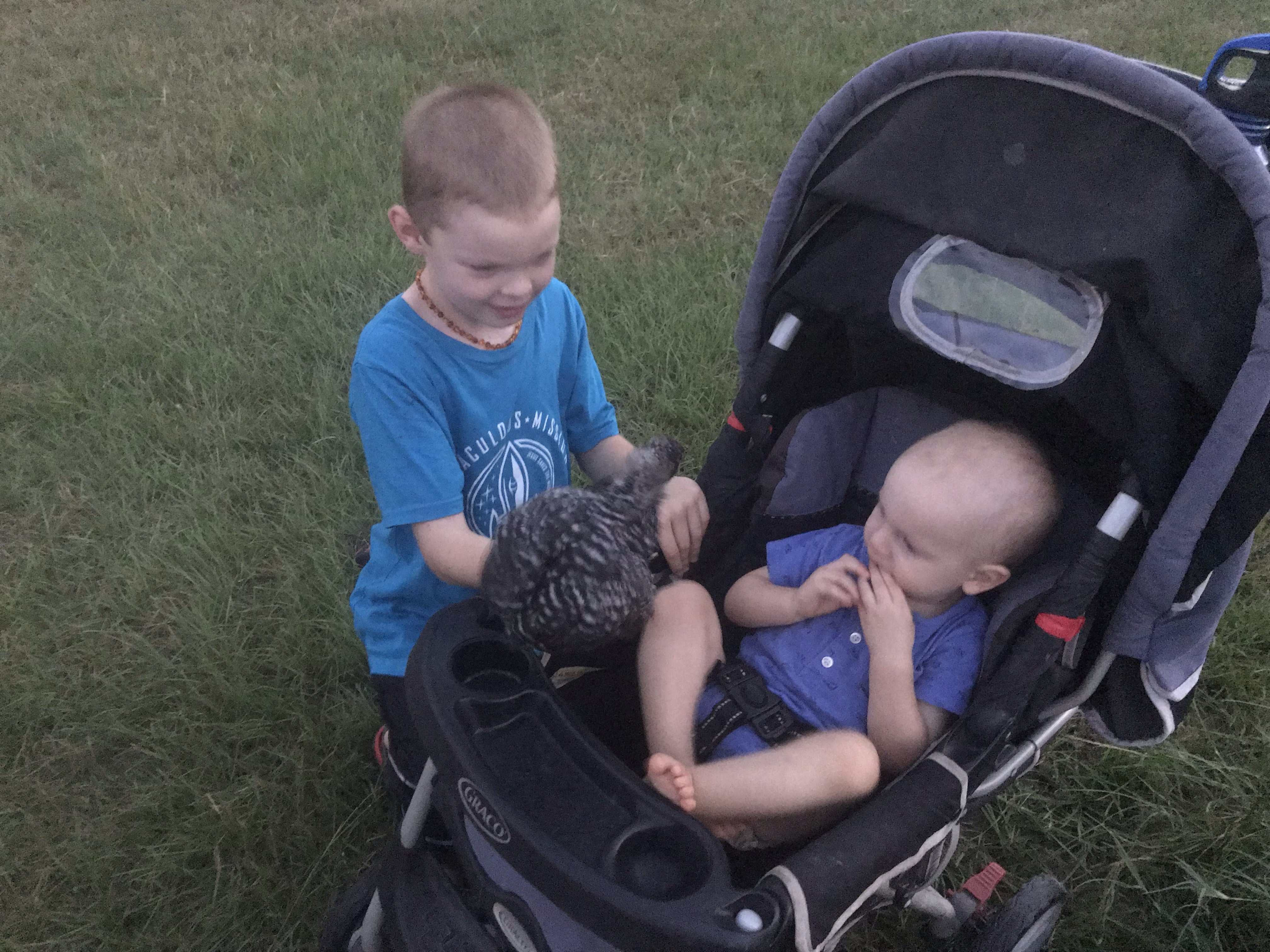 No matter the daytime weather, once the sun dips below the tree-line, the mercury drops to a more tolerable level. The sun-drenched pastures and 100+ degree barn are no place to be during the day, but as evening breaks, we can venture outside as a family. Evening chores are a fun time of doing chores together such as feeding the sheep and rounding them up into their barns. We take turns filling up the water troughs for the following day (which definitely has to be done in the evening so that the water going into the trough isn’t steaming hot). Summer evenings are also a time to bring the animals closer into the barn and interact with them after they’ve been grazing and hiding from the sun (as we do as well) all day.