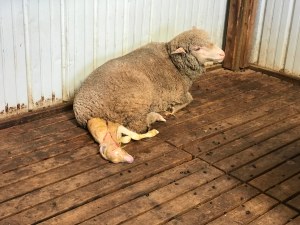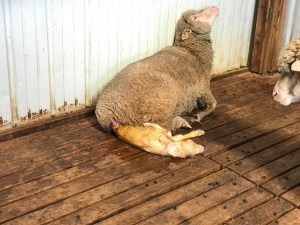 We are so proud of Sybil too, she is a wonderful mamma as are all of our ewe’s. We guessed, after he came out that he was a boy because of how long his torso was, and we were right. He is named Brodi.
