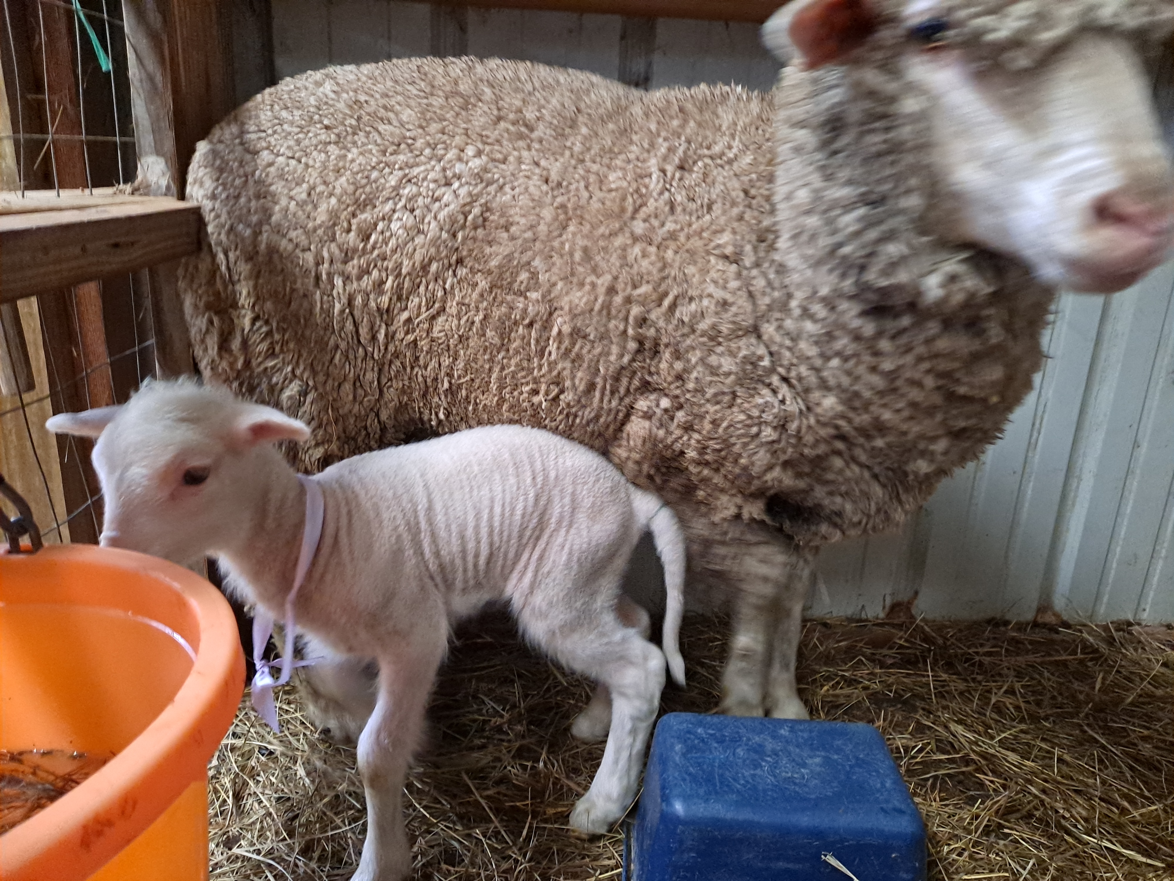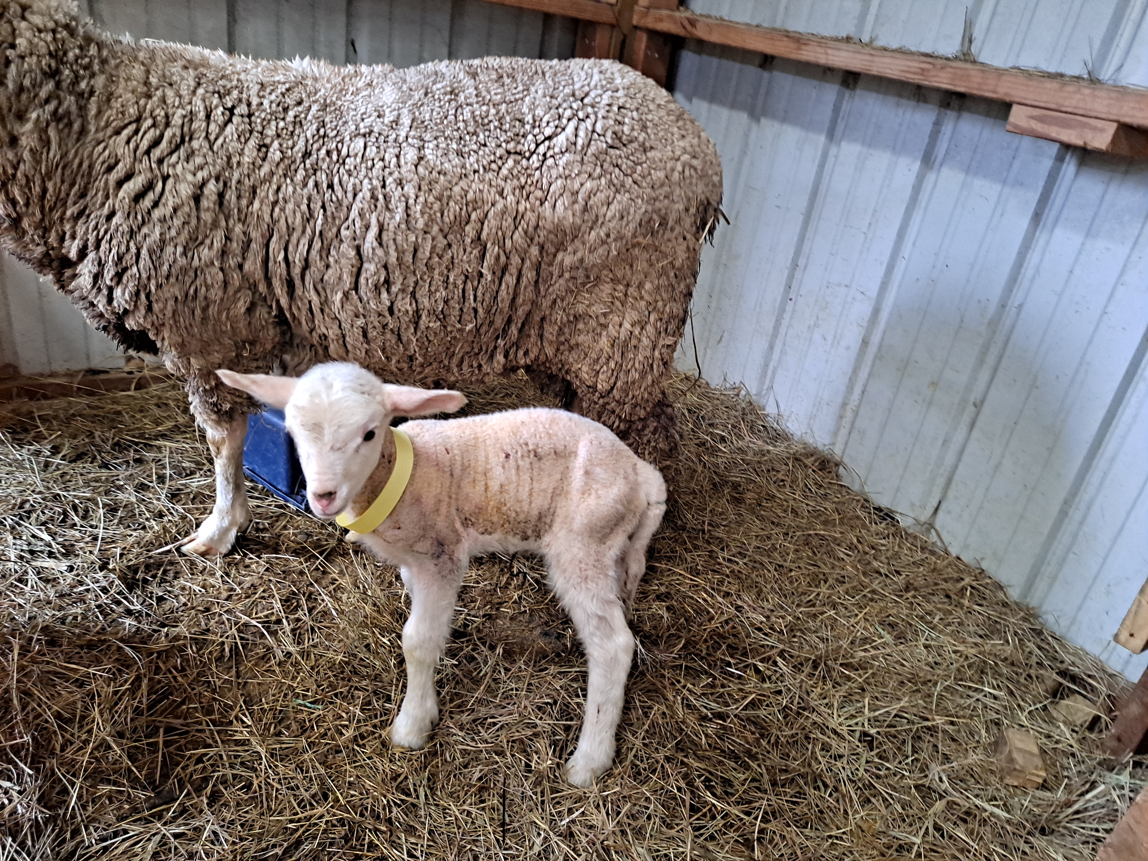 Well we weren’t exactly expecting any lambs until the end of February but two of our ewes, who shall remain nameless (nott) lol, apparently took matters into thier own hands, before we let them breed. As a result we have two that were born a month early, in January, and we don’t know who thier daddy’s are. But they are healthy and strong and that’s what’s most important. We named them Duke and Darla. And… since we don’t know who his sire was (we had 3 rams at the time), we decided to wether the boy. We like our wethers, they produce some of our very best fleeces and don’t cause us any trouble.
