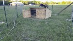 As for the goats, they’ve been somewhat of a challenge. We confiscated their living quarters to house the two new Anatolian Shepherd puppies we picked up on Friday and made a temporary pen for the goats. We knew that wouldn’t work long so we got straight to work on a proper pen that we were able to finish this weekend as well. They really seem to like their new abode and I’ve even had to shew the donkey out of it a few times since she seems to now think she is a goat too. Which brings me to the only dilemma of late. It seems that Amelia the goat and Ruth the donkey have become quite the pair and are nearly inseparable. I bring a tray of feed in the evening to get the goats to all come in the barn together, but Amelia has gotten wise to my scheme. She will not go into that barn and will hide right underneath her donkey protector. It has taken quite some coaxing the past few nights to be able to safely separate them and get Amelia into the pen with the rest of her family.