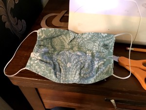 The mask thing wasn’t something I was eager to participate in. We are, after all quite isolated as it is. What use would we have for such a thing? But my grandparents asked if we could find them a few on Amazon and order them as they aren’t all that savvy when it comes to internet shopping. I looked on Amazon to see what they had…and wasn’t impressed. So I looked for an easy pattern to follow to make them some masks myself. We have a pretty slow internet connection, and not very much data, so we subscribe to YouTube to download videos in the early morning hours when we have a more generous streaming allowance. I found a pretty simple instructional that got me a basic mask but then I decided to add a pleat at the nose and the chin for more protection and better fit and I thought , why not use some wool? So I did! The result is a pretty stout little mask with a measure of air filtration sewn in. It is NOT hot by the way. One common misconception about wool is that it is hot, but truly some of the virtues of wool are that it is a great insulator to keep you warm when it is cold and it breathes very well to also keep you cool, other wise our sheep would die of heat stroke in the hot Texas sun.and the generation of mankind that only had clothes made from wool and had NO air